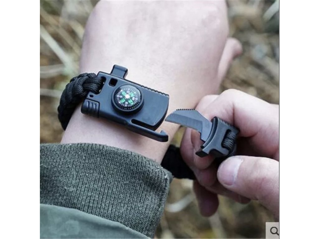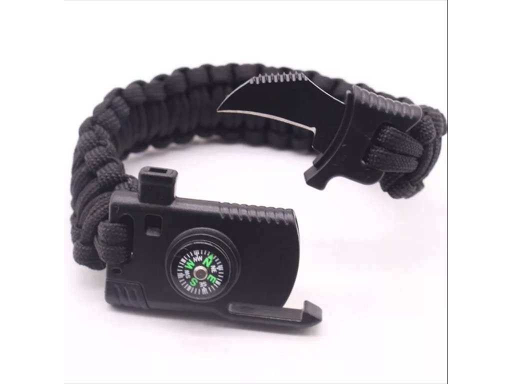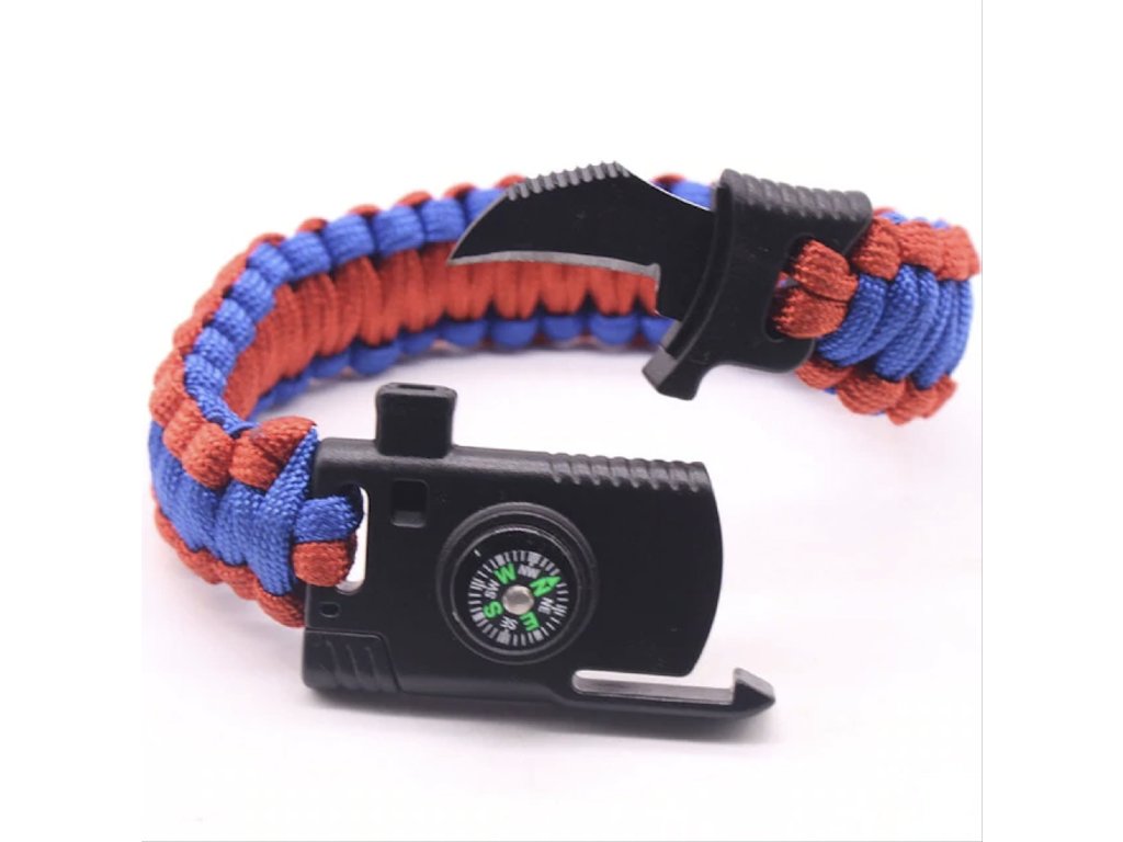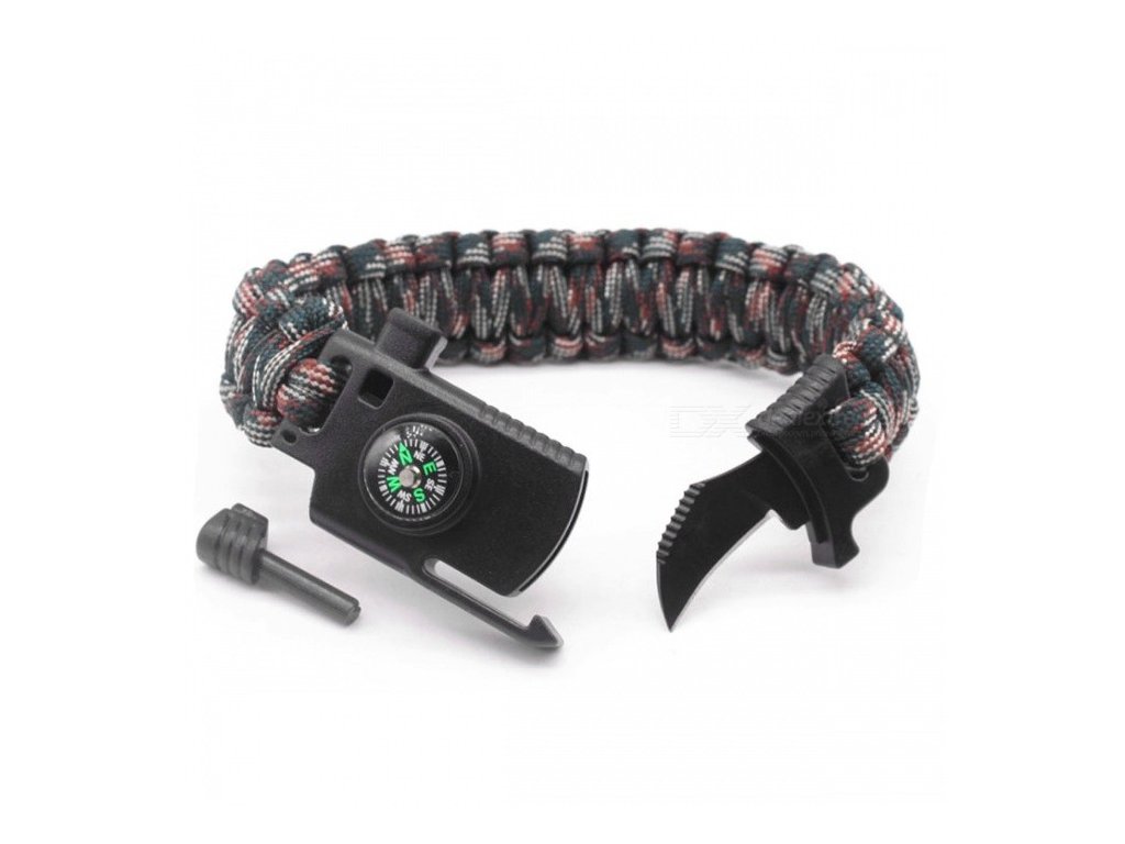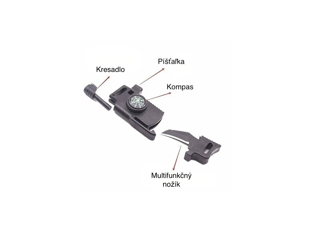 Multifunkčný Paracord náramok Expert M6 s kresadlom na založenie ohňa, s kompasom, píšťalkou a malou čepieľkou noža. Spona je z ABS. Náramky sú upletené z 2-3 metrov paracordovej šnúry 550.