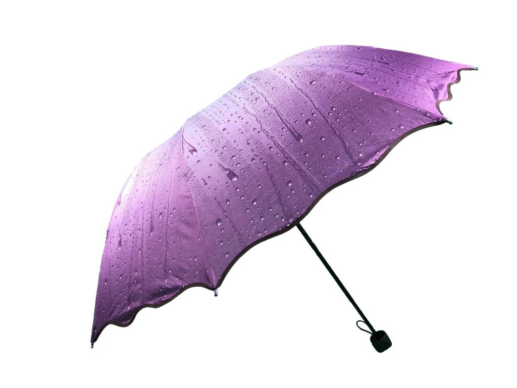 Vetruodolný skladací dáždnik - kvapky vody (fialová)
