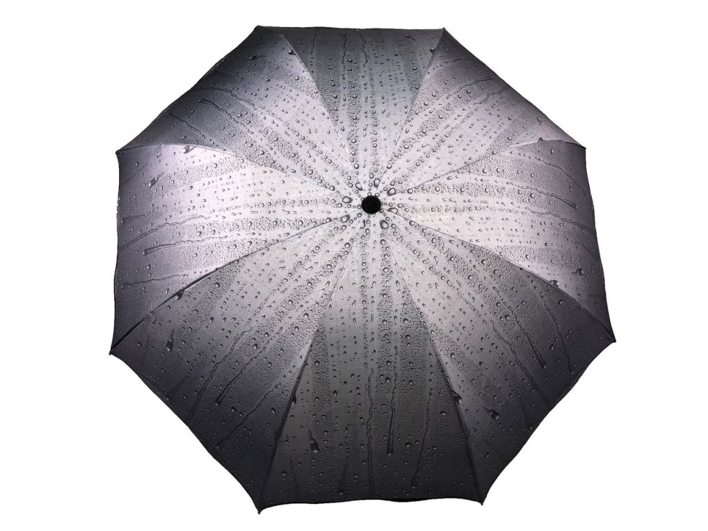 Vetruodolný skladací dáždnik - kvapky vody (sivá)